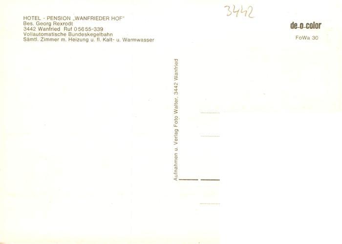 73944380 Wanfried Panorama Hotel Pension Wanfrieder Hof postalisch nicht gelaufen Erhaltung siehe scans [FriedD77] KatCode: 11110006636013