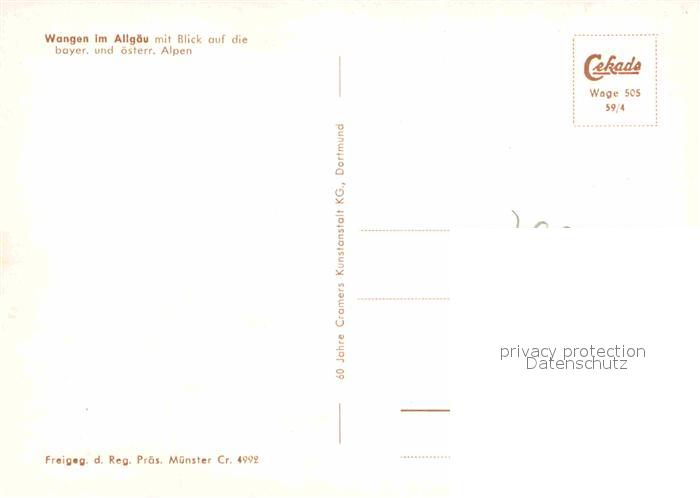 72872404 Wangen Allgaeu Blick auf bayerische und oesterreichische Alpen Fliegeraufnahme postalisch nicht gelaufen Erhaltung siehe scans [FriedD77] KatCode: 11110008436081