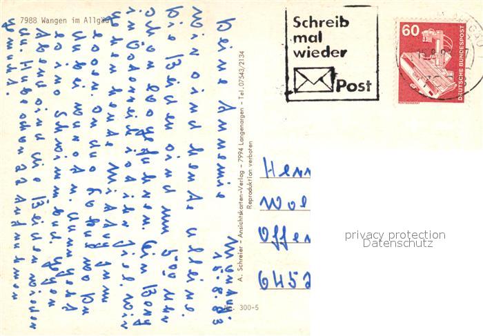 73149509 alte Postkarte Wangen Allgaeu Bodensee und Umgebung aus der Vogelperspektive Tor Rathaus Kirche postalisch gelaufen Erhaltung siehe scans [FriedD77] KatCode: 11110008436081