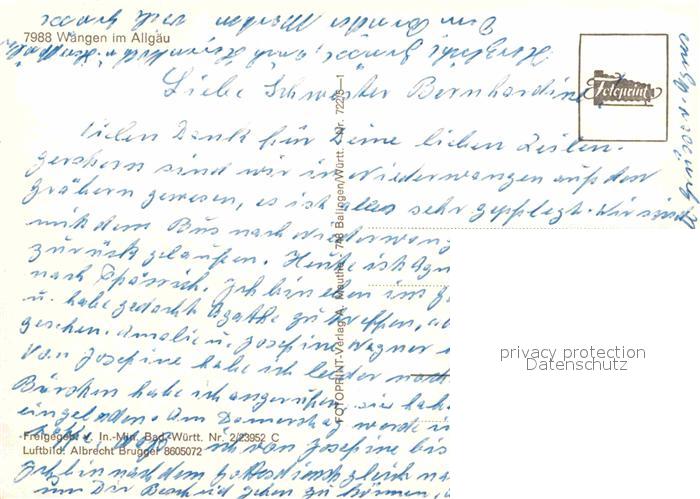 72724029 Wangen Allgaeu Fliegeraufnahme postalisch nicht gelaufen Erhaltung siehe scans [LiesaD40] KatCode: 11110008436081