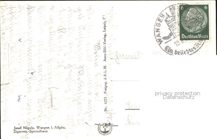 41585599 Wangen Allgaeu Fliegeraufnahme postalisch gelaufen Erhaltung siehe scans Alte Ansichtskarte Postkarte alte Postkarte hz_W Katcode 11110008436081