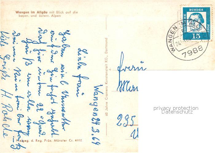 72951818 alte Postkarte Wangen Allgaeu Fliegeraufnahme postalisch gelaufen Erhaltung siehe scans [PaolaD17] KatCode: 11110008436081
