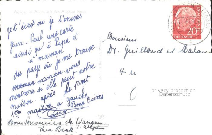 72332868 alte Postkarte Wangen Allgaeu Fliegeraufnahme Allgaeuer Bergen postalisch gelaufen Erhaltung siehe scans KatCode: 11110008436081