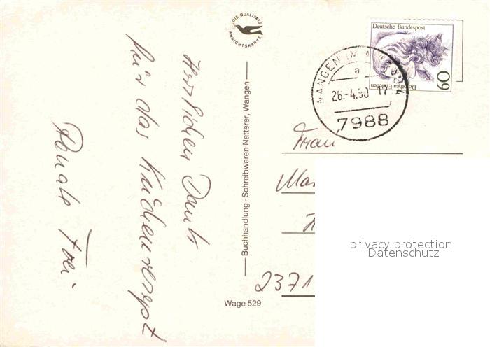 72845411 alte Postkarte Wangen Allgaeu Fliegeraufnahme paradiesstrasse Herrenstrasse Marktplatz Rathaus postalisch gelaufen Erhaltung siehe scans [AndreD76] KatCode: 11110008436081