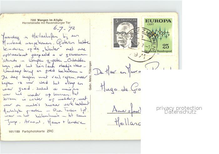 72259062 alte Postkarte Wangen Allgaeu Herrenstrasse mit Ravensburger Tor postalisch gelaufen Erhaltung siehe scans KatCode: 11110008436081