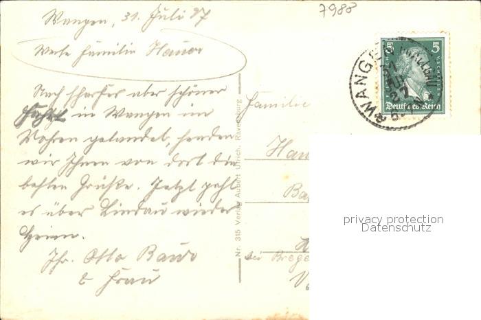 31722848 alte Postkarte Wangen Allgaeu Herrenstrasse mit Ravensburger Tor postalisch gelaufen Erhaltung siehe scans KatCode: 11110008436081