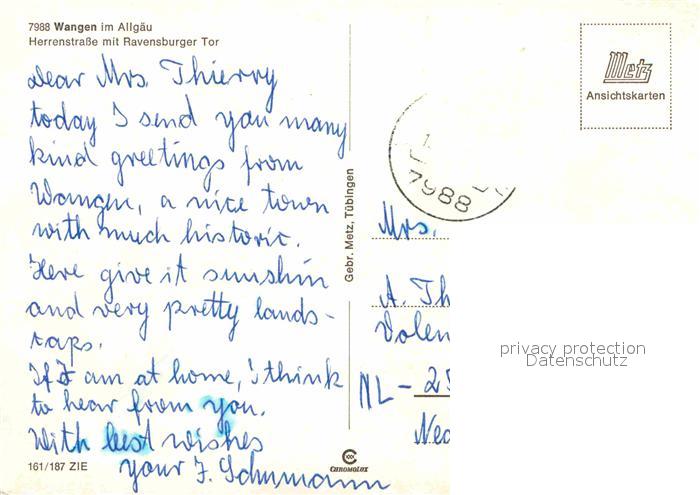 72662689 alte Postkarte Wangen Allgaeu Herrenstrasse mit Ravensburger Tor postalisch gelaufen Erhaltung siehe scans [AndreD76] KatCode: 11110008436081