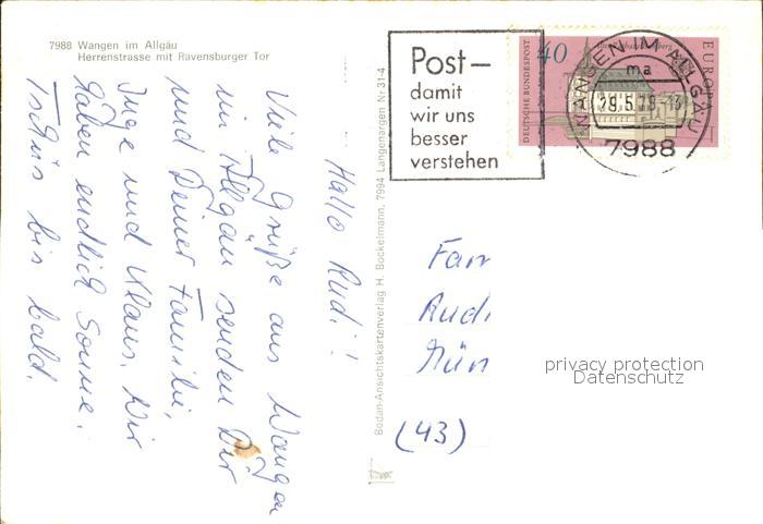 72285590 alte Postkarte Wangen Allgaeu Herrenstrasse mit Ravensburger Tor postalisch gelaufen Erhaltung siehe scans KatCode: 11110008436081