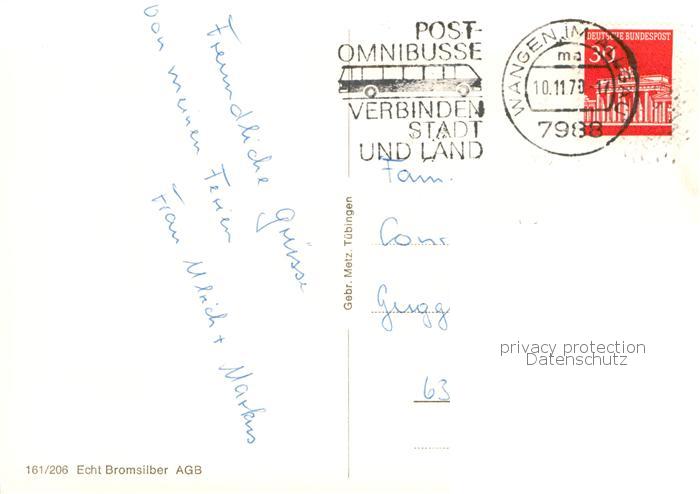 74052387 alte Postkarte Wangen Allgaeu Herrenstrasse mit Ravensburger Tor Rathaus und Ratloch Martinstor Paradiesstrasse mit St Martinstor postalisch gelaufen Erhaltung siehe scans [WerneD78] KatCode: 11110008436081