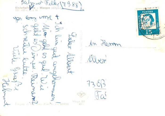 73893097 alte Postkarte Wangen Allgaeu Kinderheilstaette Fliegeraufnahme postalisch gelaufen Erhaltung siehe scans [FriedD77] KatCode: 11110008436081