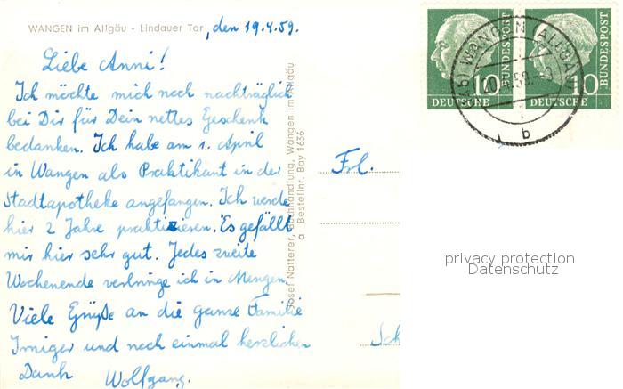 73835032 alte Postkarte Wangen Allgaeu Lindauer Tor postalisch gelaufen Erhaltung siehe scans [WerneD78] KatCode: 11110008436081