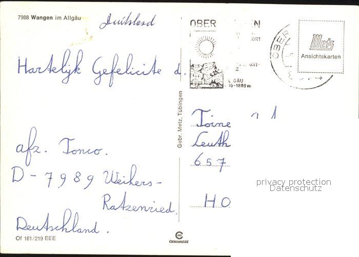 72462119 alte Postkarte Wangen Allgaeu Marktplatz Eselmuehle Ravensburger Tor Martinstorplat postalisch gelaufen Erhaltung siehe scans KatCode: 11110008436081