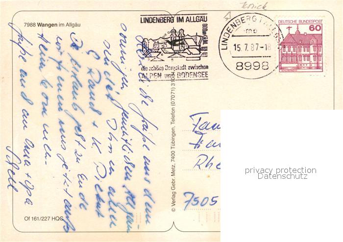 73225865 alte Postkarte Wangen Allgaeu Rathaus Marienbrunnen St Martin Ratloch Eselmuehle Postplatz postalisch gelaufen Erhaltung siehe scans [WerneD78] KatCode: 11110008436081