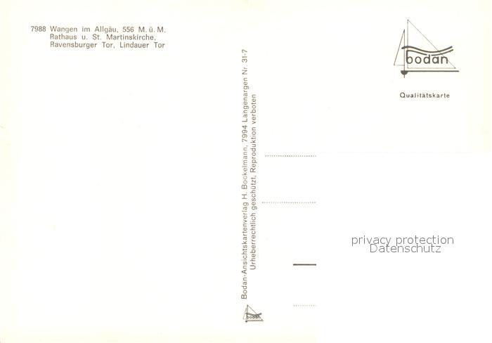 73225869 Wangen Allgaeu Rathaus und St Martinskirche Ravensburger und Lindauer Tor postalisch nicht gelaufen Erhaltung siehe scans [WerneD78] KatCode: 11110008436081