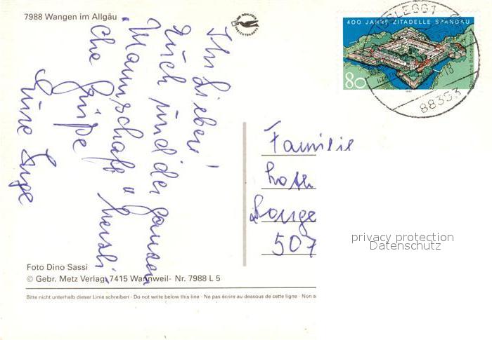 73225864 alte Postkarte Wangen Allgaeu Ravensburger Tor postalisch gelaufen Erhaltung siehe scans [WerneD78] KatCode: 11110008436081