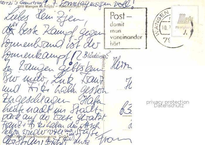 72917798 alte Postkarte Wangen Allgaeu Ravensburger Tor Brunnen postalisch gelaufen Erhaltung siehe scans [LiesaD40] KatCode: 11110008436081