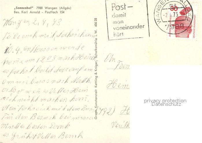 73634588 alte Postkarte Wangen Allgaeu Sonnenhof postalisch gelaufen Erhaltung siehe scans [WerneD78] KatCode: 11110008436081