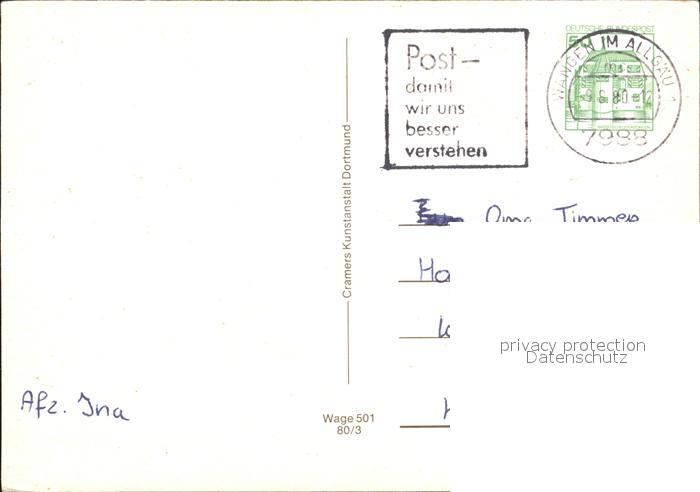 72267777 alte Postkarte Wangen Allgaeu St. Martins Tor Rathaus Martins-Kirche Herrenstrasse Eselsmuehle Marktplatz postalisch gelaufen Erhaltung siehe scans KatCode: 11110008436081