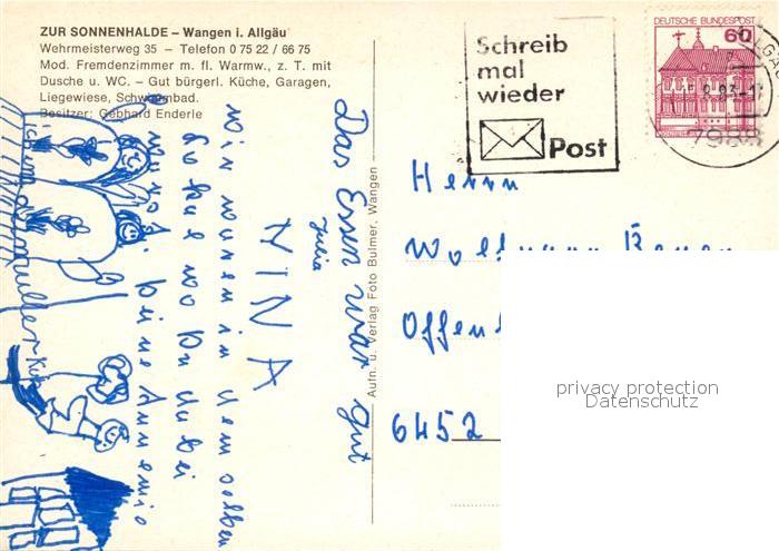 73056826 alte Postkarte Wangen Allgaeu Zur Sonnenhalde postalisch gelaufen Erhaltung siehe scans [WerneD78] KatCode: 11110008436081