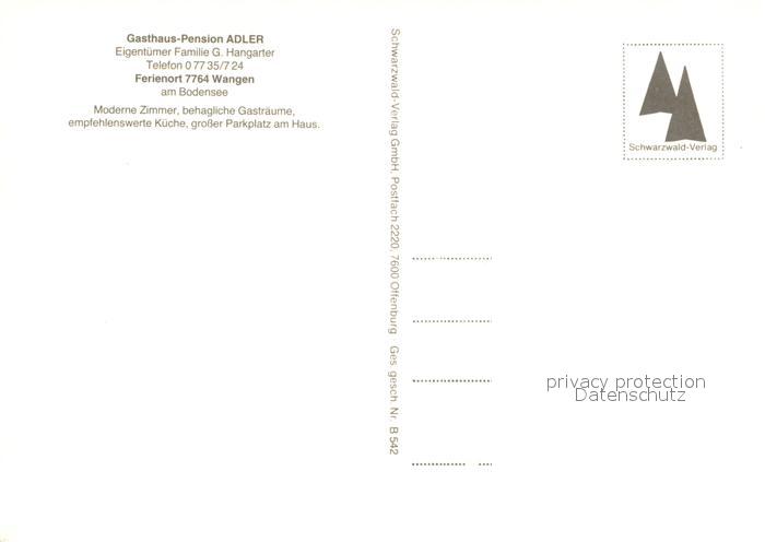 73664633 Wangen Bodensee Gasthaus Pension Adler postalisch nicht gelaufen Erhaltung siehe scans [WerneD78] KatCode: 11110008435034
