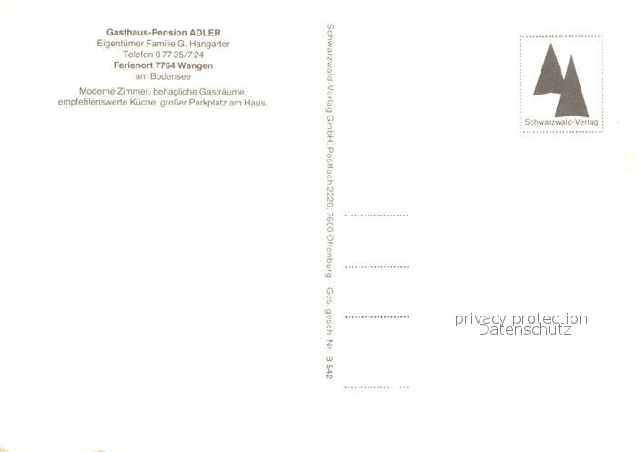 73666844 Wangen Bodensee Gasthaus Pension Adler postalisch nicht gelaufen Erhaltung siehe scans [WerneD78] KatCode: 11110008435034