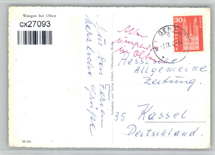 10849891 alte Postkarte Wangen Olten Fliegeraufnahme postalisch gelaufen KatCode: 11470180530460