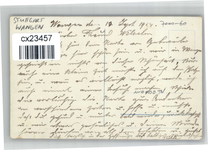 30752189 Wangen Stuttgart [Handschriftlich] postalisch nicht gelaufen KatCode: 11110008111000