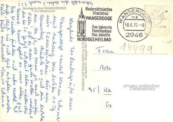 73294388 alte Postkarte Wangerooge Nordseebad Badestrand postalisch gelaufen Erhaltung siehe scans [FriedD77] KatCode: 11110003455021