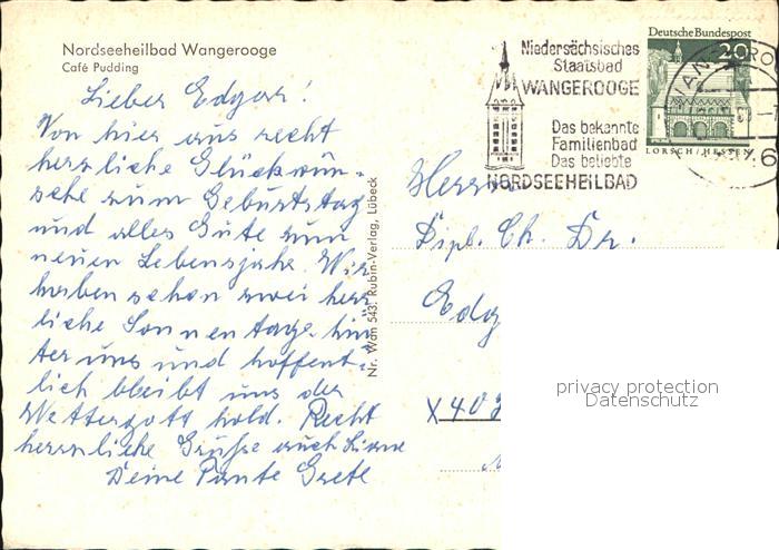 72539218 alte Postkarte Wangerooge Nordseebad Cafe Pudding postalisch gelaufen Erhaltung siehe scans [AndreD76 kt119box] KatCode: 11110003455021