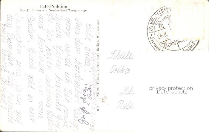 72122028 alte Postkarte Wangerooge Nordseebad Cafe Pudding Strandpartien Duenen Promenade postalisch gelaufen Erhaltung siehe scans KatCode: 11110003455021