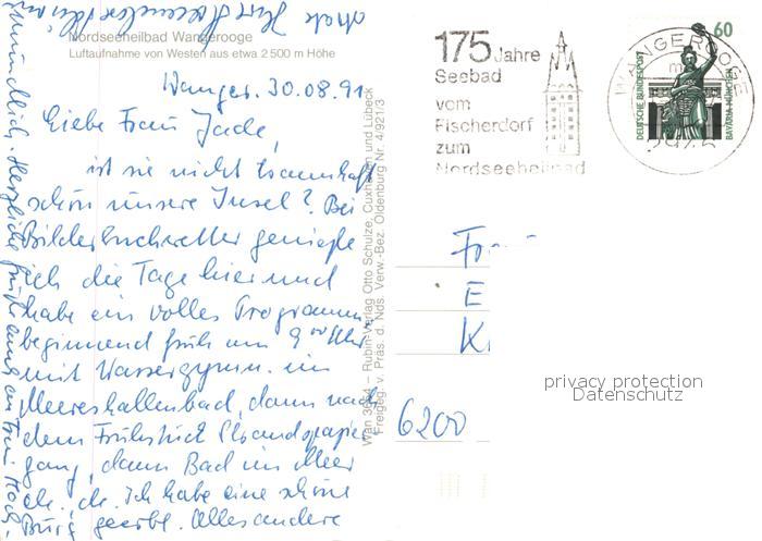 73542220 alte Postkarte Wangerooge Nordseebad Fliegeraufnahme postalisch gelaufen Erhaltung siehe scans [WerneD78] KatCode: 11110003455021