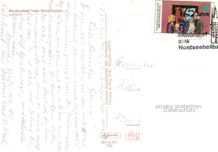 73322032 alte Postkarte Wangerooge Nordseebad Fliegeraufnahme postalisch gelaufen Erhaltung siehe scans [KathaD81] KatCode: 11110003455021