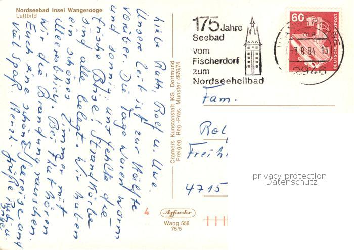 73322005 alte Postkarte Wangerooge Nordseebad Fliegeraufnahme postalisch gelaufen Erhaltung siehe scans [KathaD81] KatCode: 11110003455021