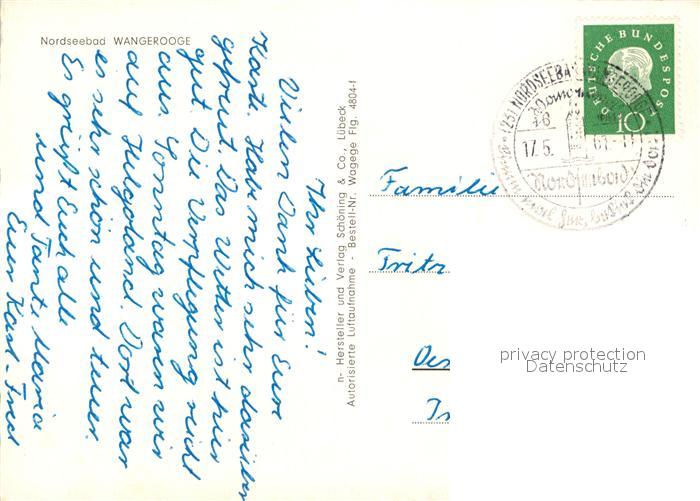 73159024 alte Postkarte Wangerooge Nordseebad Fliegeraufnahme postalisch gelaufen Erhaltung siehe scans [KathaD81] KatCode: 11110003455021