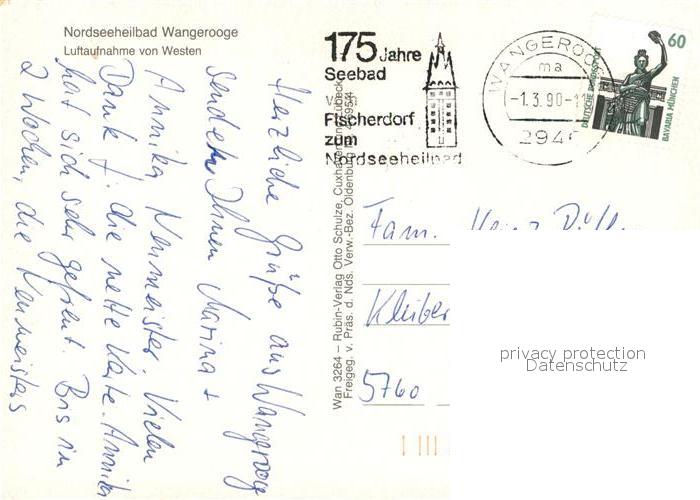 73159020 alte Postkarte Wangerooge Nordseebad Fliegeraufnahme postalisch gelaufen Erhaltung siehe scans [KathaD81] KatCode: 11110003455021