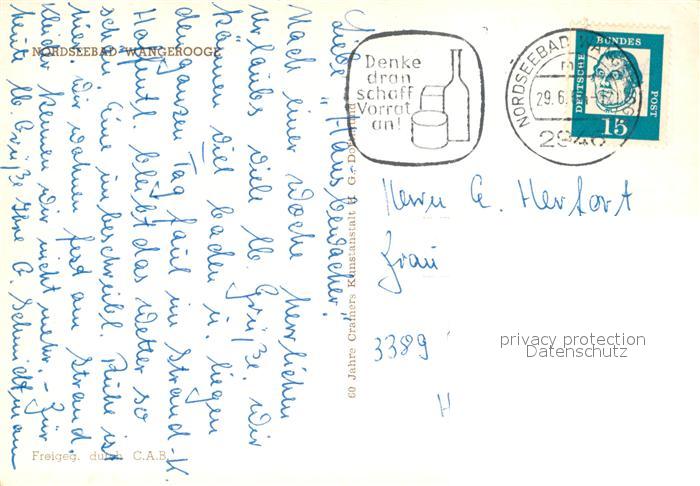 73126779 alte Postkarte Wangerooge Nordseebad Fliegeraufnahme postalisch gelaufen Erhaltung siehe scans [KathaD81] KatCode: 11110003455021