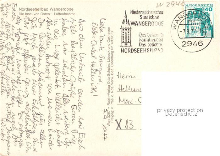 73112096 alte Postkarte Wangerooge Nordseebad Fliegeraufnahme postalisch gelaufen Erhaltung siehe scans [NatalD47] KatCode: 11110003455021