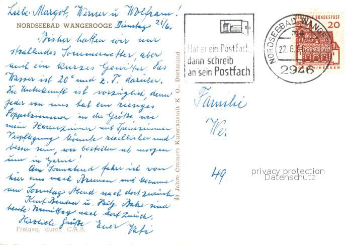 73020083 alte Postkarte Wangerooge Nordseebad Fliegeraufnahme postalisch gelaufen Erhaltung siehe scans [WerneD78] KatCode: 11110003455021