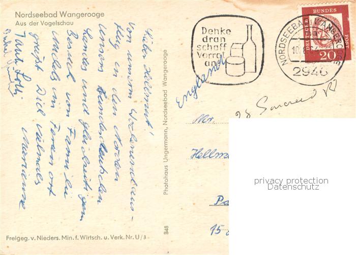 73768600 alte Postkarte Wangerooge Nordseebad Fliegeraufnahme postalisch gelaufen Erhaltung siehe scans [WerneD78] KatCode: 11110003455021