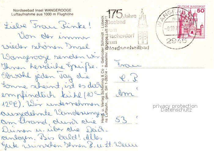 72785549 alte Postkarte Wangerooge Nordseebad Fliegeraufnahme postalisch gelaufen Erhaltung siehe scans [AndreD76] KatCode: 11110003455021
