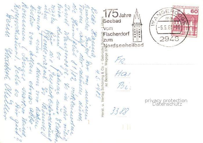 73125709 alte Postkarte Wangerooge Nordseebad Fliegeraufnahme Insel Strand postalisch gelaufen Erhaltung siehe scans [LiesaD40] KatCode: 11110003455021