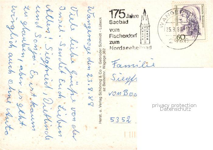 73160138 alte Postkarte Wangerooge Nordseebad Fliegeraufnahme Strand Faehrschiff Hafen Seeloewe Flughafen postalisch gelaufen Erhaltung siehe scans [KathaD81] KatCode: 11110003455021