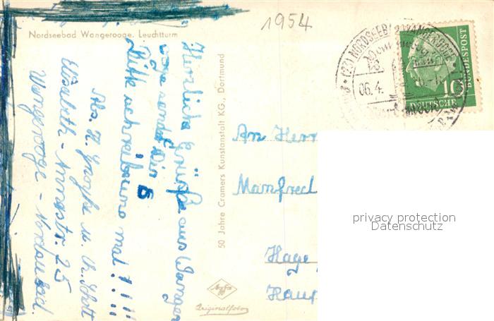 73138706 alte Postkarte Wangerooge Nordseebad Leuchtturm Nachtaufnahme postalisch gelaufen Erhaltung siehe scans [FriedD77] KatCode: 11110003455021