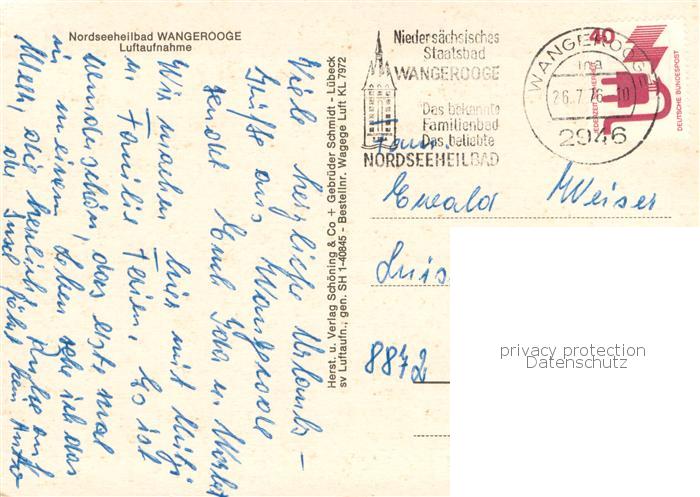 73758872 alte Postkarte Wangerooge Nordseebad Nordseeheilbad postalisch gelaufen Fliegeraufnahme Erhaltung siehe scans [FriedD77] KatCode: 11110003455021