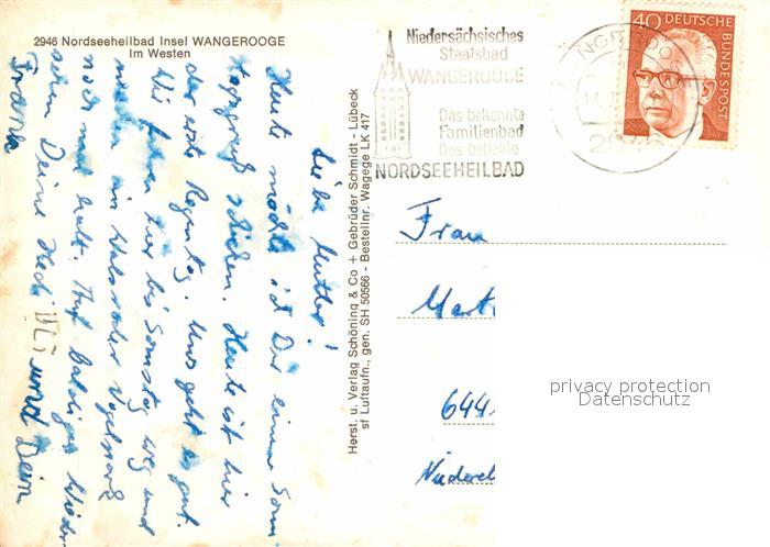 72748783 alte Postkarte Wangerooge Nordseebad Nordseeinsel Fliegeraufnahme postalisch gelaufen Erhaltung siehe scans [FriedD77] KatCode: 11110003455021