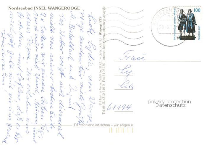 73266024 alte Postkarte Wangerooge Nordseebad Nordseeinsel Fliegeraufnahme postalisch gelaufen Erhaltung siehe scans [FriedD77] KatCode: 11110003455021