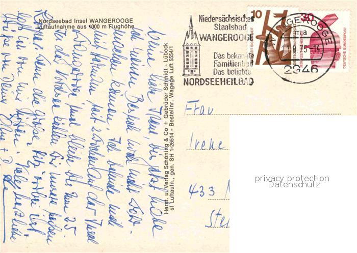 72848871 alte Postkarte Wangerooge Nordseebad Nordseeinsel Luftaufnahme aus 1000 m Hoehe postalisch gelaufen Erhaltung siehe scans [FriedD77] KatCode: 11110003455021