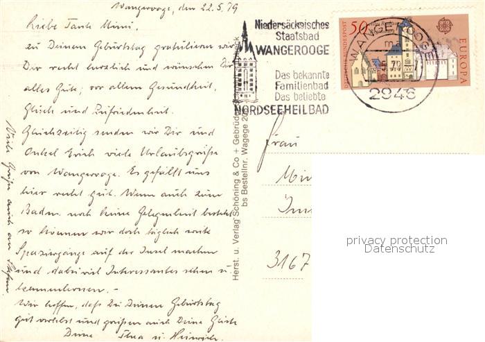 73294389 alte Postkarte Wangerooge Nordseebad Ortsmotive Freibad Strand Faehre Hallenbad Nordseeinsel Fliegeraufnahme postalisch gelaufen Erhaltung siehe scans [FriedD77] KatCode: 11110003455021