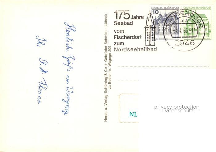 73308247 alte Postkarte Wangerooge Nordseebad Schwimmbad Strand Faehre Leuchtturm Duenen Hallenbad postalisch gelaufen Erhaltung siehe scans [WerneD78] KatCode: 11110003455021