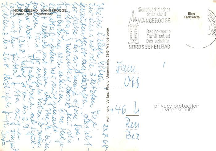 73160096 alte Postkarte Wangerooge Nordseebad Strand Promenade Strandkoerbe postalisch gelaufen Erhaltung siehe scans [KathaD81] KatCode: 11110003455021